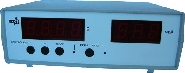 1. Подключите сетевые шнуры блоков к сети и включите блок измерительного устройства выключателем ″сеть″ на его задней панели. При этом должны загореться индикаторы ″обратная″, ″В″ и ″мкА″. На индикаторе ″В″ должны установиться нули (0000). 2. Включить блок излучателя выключателем ″сеть″ на его передней панели. Дать лампе осветителя прогреться в течение 10 мин. После прогрева прибора нажать кнопку ″ сброс″. 3. Кнопкой ″прямая – обратная″ установить режим измерения прямой ветви вольтамперной характеристики (нажать кнопку ″прямая″). 4. Установить на пути светового потока светофильтр номер 5. При этом световой поток, падающий фотоэлемент, будет перекрыт. 5. Ручками ″установка нуля″ (5,6) установить нулевое значение тока на индикаторе ″мкА″ измерительного блока. 6. Установить на пути светового потока светофильтр номер 1. 7. Изменяя значения напряжения на фотоэлементе с помощью кнопок ″+″ и ″″ через 1 В и, считывая показания фототока Ia с индикатора ″мкА″, получите данные для построения прямой ветви вольтамперной характеристики этого светофильтра. 8. Проверить отсутствие темнового тока (смотри п. 5). 10. Кнопкой ″прямая – обратная″ установить режим измерения обратной ветви вольтамперной характеристики (нажать кнопку ″обратная″) 11. Изменяя значения напряжения на фотоэлементе с помощью кнопок ″+″ и ″″ через 1 В и, считывая показания фототока Ia с индикатора ″мкА″, получите данные для построения обратной ветви вольтамперной характеристики этого светофильтра. 12. Устанавливая на пути светового потока поочередно светофильтры номер 2, 3 или 4 (по указанию преподавателя), повторить пп. 5.-11. 13. По полученным данным построить вольтамперные характеристики и по ним найти для разных светофильтров задерживающие потенциалы 14. Найти число фотоэлектронов, выбитых из катода в единицу времени: