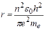 где Z – число электронов в атоме (в случае атома водорода Z = 1), е – заряд электрона, eо – электрическая постоянная. Решая совместно (3) и (4), получим: