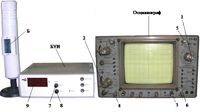 Рисунок 3 – Установка для проведения опыта Франка и Герца. Б – баллон лампы; БУИ – блок управления и индикации