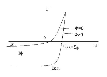 ВАХ p-n – перехода в отсутствии освещения может быть описана следующим выражением: