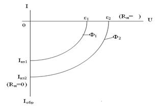 Рисунок 2.7 – Вольт – амперная характеристика вентильного фотоэлемента при разных освещенностях
