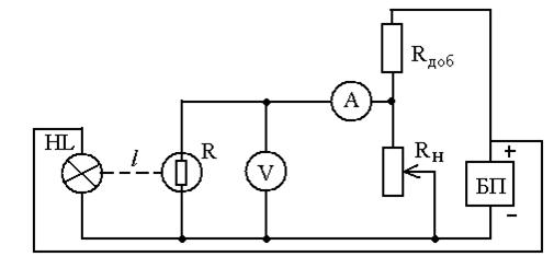 Рисунок 2.11 2 Снять темновую вольт-амперную характеристику фотосопротивления, для чего отключить одну из клемм лампы накаливания и изменяя напряжение на фотосопротивлении фиксировать значение силы тока. Напряжение на фотосопротивлении задается с помощью делителя, состоящего из Rдоб и RН, для этого следует изменять RН от 0 до 500 Ом, через каждые 50 Ом. Значения напряжения и силы тока занести в таблицу 2. 3 Подключить лампочку, задать расстояние от лампы до фотосопротивления в соответствии с выбранным вариантом, изменяя напряжение, подаваемое на фоторезистор, снимать значение силы тока через освещенный фоторезистор Iс. Результаты записать в таблицу 2. 4 Построить графики зависимости темнового тока и фототока от напряжения: