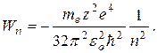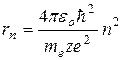 Таким образом rn~ n2, т.е. с ростом номера орбиты радиус ее растет. Для водорода (z=1) при n =1: Подставив (5.9) в выражение (5.8), получим: