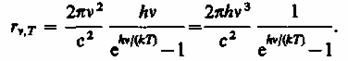 которая блестяще согласуется с экспериментальными данными по распределению энергии в спектрах излучения черного тела во всем интервале частот и температур. Теоретический вывод этой формулы М. Планк изложил 14 декабря 1900 г. на заседании Немецкого физического общества. Этот день стал датой рождения квантовой физики. В области малых частот, т. е. при hv << kT (энергия кванта очень мала по сравнению с энергией теплового движения kT), формула Планка (200.3) совпадает с формулой Рэлея - Джинса (200.1). Для доказательства этого разложим экспоненциальную функцию в ряд, ограничившись для рассматриваемого случая двумя первыми членами: