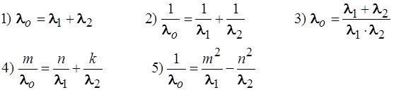 27. При облучении атома водорода длиной волны l0 электрон перешел с m – й на n – юорбиту (m < n), а при возвращении в исходное состояние электрон перешел сначала с n – й орбиты на k – ю, испустив квант света с длиной волны l1, а затем на m – ю (n > k > m) стационарную орбиту, излучив свет с длиной волны l2. Тогда: