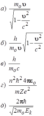 38. Скорость, которую приобретет первоначально покоившийся атом водорода после испускания фотона, соответствующего красной границе серии Лаймана, равна (м/с): 1) 3,2·103 2) 8,2·10–2 3) 3,3 4) 4,5·102 5) 0,2