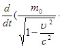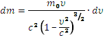 В механике Ньютона масса т считается величиной постоянной, независящей от состояния движения. Как можно показать, это предположение не совместимо с требованием инвариантности уравнений по отношению к преобразованию Лоренца. Требование, чтобы в механике теории относительности, как и в механике Ньютона, для изолированной системы тел выполнялся в любой системе закон сохранения количества движения и учет законов преобразования скоростей при переходе из одной системы в другую, приводит к выводу, что масса тела должна иметь разные значения в разных системах, находящихся в относительном движении. Закон преобразования масс при этом окажется следующим: m = m0 / Здесь т0 есть значение массы, измеренной в системе, в которой она покоится, а т — значение той же массы, измеренной в системе, движущейся относительно первой с постоянной скоростью υ. Уравнения механики окажутся инвариантными по отношению к преобразованиям Лоренца, если в формуле (1) под массой т подразумевать величину, преобразующуюся по закону (2). Таким образом, уравнения механики теории относительности принимают форму: