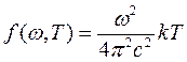 где T – абсолютная температура, σ – константа, получившая название постоянной Стефана-Больцмана, σ = 5,7·10–8 Вт/(м2·К4). Если коэффициент поглощения какого-либо тела отличен от единицы, но постоянен для всех длин волн и зависит только от температуры тела, материала и состояния поверхности, то такое тело называют серым. Понятие серое тело используют как идеализированную модель реальных тел. Закон Стефана-Больцмана (1.11), выведенный для абсолютно черного тела, для серого тела, обладающего поглощательной способностью аТ сер, имеет вид: Попытки получить математическую функцию f(ω,Т) или φ(λ,Т), описывающую спектральное распределение энергии излучения тела, долго не приносили результатов, сколько-нибудь согласующихся с экспериментальными данными. Причиной этого был так называемый «классический подход» к решению данной задачи. Все ученые того времени исходили из соображений классической механики и представлений, что излучение – это волна, распространяющаяся непрерывно. Соответственно энергия, переносимая волной, должна иметь непрерывный спектральный состав, то есть, энергия волны – есть непрерывная функция частоты (или длины волны) излучения. Примером неудачной попытки построить теорию, согласующуюся с опытом, была формула, выведенная Джоном Уильямом Рэлеем и Джинсом. При расчетах они опирались на теорему классической статистики о равномерном распределении энергии по степеням свободы. Рассматривая излучение как электромагнитную волну, было положено, что на каждое колебание приходится две половинки kT, что привело к формуле: