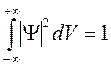 где интегрирование проводится по координатам x, y, z. Очевидно, что сам факт существования частицы означает, что вероятность найти ее где-либо в бесконечном объеме равна 1: