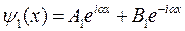 Рис. 6.2. Изменение волновой функции при переходе через потенциальный барьер Запишем их: для области I: для области III: для области II: Слагаемое в каждом решении вида еiαx соответствует волне, распространяющейся в положительном направлении оси x, слагаемое же вида е–iαx соответствует волне, распространяющейся в отрицательном направлении оси x. Сразу отметим, что коэффициент В3 должен быть равен нулю, так как в области III есть только волна, распространяющаяся в положительном направлении оси x, то есть слева направо. Для нахождения остальных коэффициентов необходимо воспользоваться упомянутыми выше условиями, накладываемыми на волновую функцию – однозначность, непрерывность и конечность. Чтобы функция была непрерывна, волновые функции на границах рассматриваемых областей должны иметь одинаковое значение: