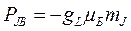 где проекция магнитного момента атома PJB задается на направление магнитного поля и равна, согласно формуле (7.6), Подставив это выражение в формулу (8.8), получим величину расщепления энергетических уровней атома в магнитном поле B: