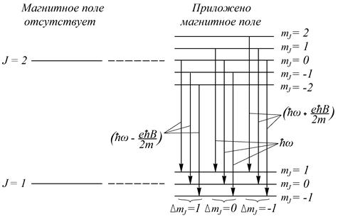 Рис. 8.1. Нормальный эффект Зеемана Следовательно, уровни с различным значением mJ разделены друг от друга энергетическими промежутками, равными: