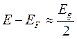 Параметр EF носит название энергии Ферми. Уровень Ферми – это виртуальный уровень, который соответствует середине между всеми занятыми и всеми свободными состояниями при условии, что тех и других имеется одинаковое количество. В идеале все свободные уровни располагаются выше уровня Ферми, все занятые – ниже. Однако в реальных кристаллах свободный уровень может оказаться ниже уровня Ферми, если выше уровня Ферми найдется занятый электроном уровень. Для металлов уровень Ферми находится в зоне проводимости. Для собственных (т.е. чистых) полупроводников энергия Ферми при комнатной температуре соответствует приблизительно середине запрещенной зоны, следовательно: