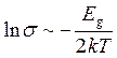 или Видно, что электропроводность собственных полупроводников экспоненциально растет с температурой (рис. 12.2). Измерив электропроводность полупроводника при различных температурах, можно определить ширину запрещенной зоны. В полулогарифмических координатах (как на рис. 12.2) тангенс угла наклона прямой будет пропорционален Eg.