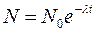 N0 – количество ядер в начальный момент времени, N – количество ядер, нераспавшихся к моменту времени t, согласно приведенной формуле это количество уменьшается со временем по экспоненте. Количество распавшихся ядер определяется разностью между начальным количеством ядер и количеством распавшихся к моменту времени t: