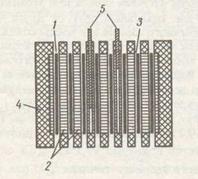 Реакции (266.2) и (26S.2), таким образом, открывают реальную возможность воспроизводства ядерного горючего в процессе цепной реакции деления. § 267. Понятие о ядерной энергетик* Большое значение в ядерной энергетике приобретает не только осуществление цепной реакции деления, но и управление ею. Устройства, в которых осуществляется и поддерживается управляемая цепная реакция деления, называются ядерными реакторам!. Пуск первого реактора в мире осуществлен в Чикагском университете (1942) под руководством Э. Ферми, в России (и в Европе) — в Москве (1946) под руководством И. В. Курчатова. Для пояснения работы реактора рассмотрим принцип действия реактора на тепловых нейтронах (рис. 345). В активной зоне реактора расположены тепловыделяющие элементы / и замедлитель 2, в котором нейтроны замедляются до тепловых скоростей. Тепловыделяющие элементы (твэлы) представляют собой блоки из делящегося материала, заключенные в герметичную оболочку, слабо поглощающую нейтроны. За счет энергии, выделяющейся при делении ядер, твэлы разогреваются, а поэтому для охлаждения они помещаются в поток теплоносителя (5 — канал для протока теплоносителя). Активная зона окружается отражателем 4, уменьшающим утечку нейтронов. Управление цепной реакцией осуществляется специальными управляющими стержнями 5 из материалов, сильно поглощающих нейтроны (например, В, Cd). Параметры реактора рассчитываются так, что при полностью вставленных стержнях реакция заведомо не идет, при постепенном вынимании стержней коэффициент размножения нейтронов растет и при некотором их положении принимает значение, равное единице. В этот момент реактор начинает работать. По мере его работы количество делящегося материала в активной зоне уменьшается и происходит ее загрязнение осколками деления, среди которых могут быть сильные поглотители нейтронов. Чтобы реакция не прекратилась, из активной зоны с помощью автоматического устройства постепенно извлекаются управляющие (а часто специальные компенсирующие) стержни. Подобное управление реакцией возможно благодаря существованию запаздывающих нейтронов (см. § 265), испускаемых делящимися ядрами с запаздыванием до 1 мин. Когда ядерное топливо выгорает, реакция прекращается. До нового запуска реактора выгоревшее ядерное топливо извлекают и загружают новое. В реакторе имеются также аварийные