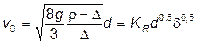где KR – коэффициент Риттенгера. Интерполяционные формулы для расчета скорости падения сферических частиц получены, как правило, на основании аппроксимации кривой Релея. Наиболее простым способом аппроксимации является разделение кривой на ряд участков, в каждом из которых зависимость между y и Re приближенно заменяется линейной. Обобщающая формула имеет следующий вид: v 0 = где K – коэффициент Стокса, Аллена и Риттенгера соответственно для мелких, средних и крупных частиц; Для определения вида частной формулы, которую следует применить в том или ином случае, необходимо знать число Рейнольдса, зависящее, в свою очередь, от искомой скорости. П.В.Лященко предложил использовать безразмерные параметры