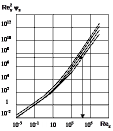 Также для расчета скорости может быть применен графический метод Лященко – Шиллера – Наумана: по формуле (21) рассчитывают первый параметр Лященко