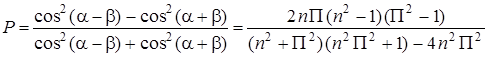 Если падающее излучение неполяризованное, то прошедшее излучение оказывается частично поляризованным, при этом степень поляризации P, численно равная качеству поляризатора Q, определяется соотношением: