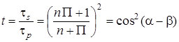Заметим, что отношение коэффициентов пропускания не зависит от сечения преломленного пучка и рассчитывается по формуле:
