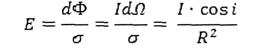 есть сила света, одинаковая для любого направления. В случае неравномерного потока величина Ф/4π представляет лишь среднюю силу света и называется средней сферической силой света. Для количественной оценки освещаемой поверхности введено понятие освещенности - величины потока, приходящейся на единицу поверхности. Освещенность площадки σ (обозначения те же, что на рисунке 3) есть
