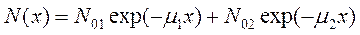 (4) где μi – коэффициент поглощения i - ой компоненты. Пусть в излучении содержатся две компоненты: жесткая и мягкая. Тогда: