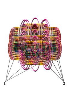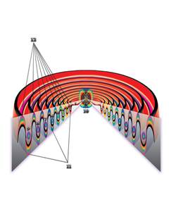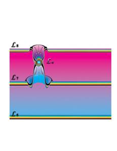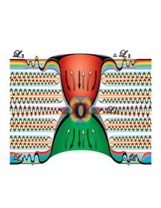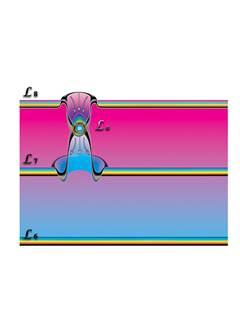 Для возможности образования метавселенных из одиннадцати форм материй, необходимо, чтобы три суперпространства второго порядка находились друг от друга на расстоянии, не более собственного размера. При этом, возникают три встречные волны внутреннего искривления матричного пространства, которые, при резонансе, создают дополнительные зоны искривления. В этих зонах происходит синтез метавселенных из одиннадцати форм материй. Вновь возникает встречное смыкание метавселенных, но уже на другом балансном уровне матричного пространства. Образуется замкнутая пространственная система — суперпространство третьего порядка (Рис. 2.3.8).