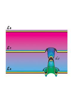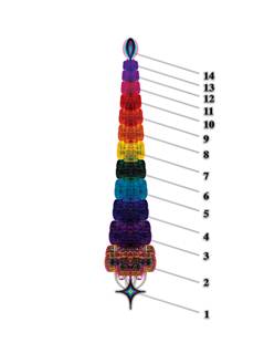 В антишестилучевике материи перетекают в противоположном направлении. Материи из нашего матричного пространства вытекают через центральную зону, а материи из другого матричного пространства втекают через «лучевые» зоны смыкания. Что же касается шестилучевика, то он образуется смыканием шести аналогичных «лучей» в одной центральной зоне. При этом, вокруг центра возникают зоны искривления мерности матричного пространства, в которых образуются метавселенные из четырнадцати форм материй, которые, в свою очередь, смыкаются и образуют замкнутую систему метавселенных, которая объединяет шесть лучей в одну общую систему — шестилучевик (Рис. 2.3.11). Причём, количество «лучей» определяется тем, что в нашем матричном пространстве могут слиться, при образовании, максимально, четырнадцать форм материй данного типа. При этом, мерность возникшего объединения метавселенных равна π (π = 3,14...). Эта совокупная мерность близка к трём. Именно поэтому возникает шесть «лучей», именно поэтому говорят о трёх измерениях и т.д... Таким образом, в результате последовательного формирования пространственных структур, образуется балансная система распределения материй между нашим матричным пространством и другими. После завершения формирования Шестилучевика, устойчивое состояние которого возможно только лишь при тождестве между массой притекающих и вытекающих из него материй: ∫∫N(+)dmidi = 6 ∫∫η(-)dmidi (2.3.4) где: N(+) — центральная область смыкания матричных пространств, через которую материи притекают в наше матричное пространство; η(-) — «лучевые» зоны смыкания с другим матричным пространством, через которое материи вытекают из нашего матричного пространства; i — число форм материй, образующих шестилучевик; mi — масса материй. Тождество (2.3.4) для всего нашего матричного пространства можно записать в более удобном виде: