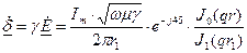 где Jо (qr) – функция Бесселя нулевого порядка первого рода; Nо (qr) –функция Бесселя нулевого порядка второго рода. Вторым слагаемым в выражении (7) при реальных значениях r, γ, ω, µ можно пренебречь, тогда (7) запишем следующим образом: