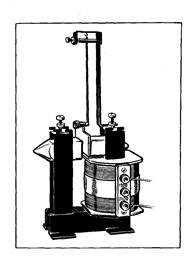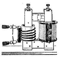Вариант 1. Оборудование: (рис.26) комплект универсального трансформатора, дроссельная катушка, источник постоянного тока ВС-24. Соберите из комплекта установку, изображенную на рис.26. Полюсные наконечники расположите так, чтобы между ними была щель, достаточная для прохождения алюминиевых пластин маятника без задевания за полюсные наконечники. Высоковольтную катушку на 220 В (или дроссельную) подключите к выпрямителю. Рис.26 Рис.27 Отведите маятник на некоторый угол от положения равновесия и измерьте время торможения колеблющегося маятника (из сплошной пластины) при включенной и выключенной цепи. Затем вместо сплошной пластины укрепите на маятнике алюминиевую пластину с прорезями (рис27) и вновь измерьте время торможения (при том же первоначальном угле отклонения маятника от положения равновесия). Вариант 2. Оборудование: (рис.28) комплект универсального трансформатора, источник постоянного тока ВС-24. Соберите установку по рис. 28. Для демонстрации принципа действия индукционной печи наблюдайте расплавление кусочка олова при пропускании тока через катушку.