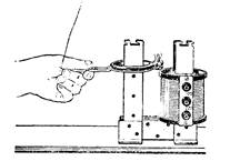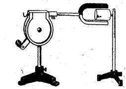 Рис.28. Вариант 3. В этой установке (рис. 29) используется оборудование опыта 3 (вариант 2). Алюминиевый цилиндр закреплён на горизонтальной оси и вращается с малым трением. Дугообразный магнит установлен на стержне, закреплённом винтом во втулке центробежной машины. Покажите, что при вращении магнита приходит во вращение и алюминиевый цилиндр.