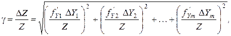 1. Косвенными являются измерения, при которых искомую физическую величину Z определяют путем вычислений по результатам прямых измерений других величин. Поэтому после проведения прямых измерений и оценки их неопределенностей (погрешностей) необходимо вычислить среднее значение искомой величины (Zср) по рабочей формуле, в которую подставляют средние значения величин, полученных из прямых измерений. 2. Для оценки неопределенностей (погрешностей) косвенных измерений величины Z необходимо вывести формулу для ее относительной погрешности g. Пусть искомая величина Z является функцией нескольких переменных: Тогда