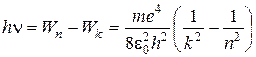 Из последней формулы следует, что энергия атома, находящегося в любом стационарном состоянии, выражается через константы m, e, Согласно третьему постулату Бора, энергия кванта, излученного атомом при переходе электрона с орбиты n на орбиту k, равна