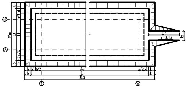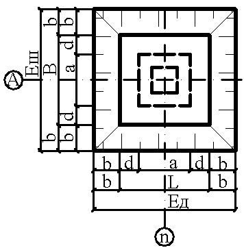 Рассчитав размеры земляных сооружений, определяют: 1. Площадь котлована по низу: А = B × L 2. Площадь котлована по верху: А1 = Еш × Ед 3. Среднюю площадь котлована: