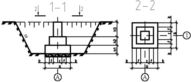 б) для отдельностоящих фундаментов (Рис. 3а): Vб=[h1·а2+h2·(c+2f)2+h·c2]·n1