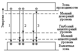 Известно, что энергетический спектр идеального полупроводникового кристалла (кристалл без дефектов и примесей) состоит из широких полос разрешенных состояний электронов – зоны проводимости и валентной зоны, разделенных зоной запрещенных состояний (запрещенная зона). И в валентной зоне и в зоне проводимости энергетические состояния электронов образуют практически непрерывный спектр.