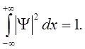 где Е – полная механическая энергия частицы. Уравнение (2.5) называется стационарным уравнением Шредингера. Волновая функция частицы должна удовлетворять стандартным условиям: она должна быть однозначной, конечной, непрерывной и иметь непрерывную первую производную. Первые два требования обусловлены тем, что волновая функция определяет величину вероятности нахождения частицы в различных областях пространства. Вторые два условия связаны с видом уравнения Шредингера, в которое входит вторая производная волновой функции. Волновая функция должна также удовлетворять условию нормировки: