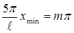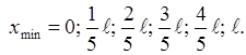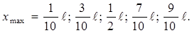 Пример 4. Частица находится в одномерной, прямоугольной, потенциальной яме на пятом энергетическом уровне. Определить, в каких точках интервала 0 £ x £ ℓ плотность вероятности нахождения частицы имеет максимальные и минимальные значения. Рассчитать вероятность нахождения частицы в интервале Плотность вероятности равна квадрату модуля волновой функции. В данном случае: