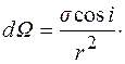 Видимая поверхность элемента в направлении оси равна s cos i. Пусть поток, посылаемой ею в телесный угол dW, равен dФ. Очевидно, он пропорционален видимой поверхности излучателя s cosi и величине телесного угла dW. Коэффициент пропорциональности зависит от свойств излучающей поверхности и может быть различным для различных направлений углов i относительно нормали. Обозначив этот коэффициент через Вi получим