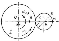 Мгновенный центр скоростей шестерни АВ находится: -: в точке О -: в точке Н -: в точке К +: в точке L -: в точке М -: правей точки М за пределами шестерни АВ