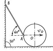 Колесо катится без скольжения. Найти угловую скорость звена АВ и скорость точки В: ωАВ = … (рад/с); v B = …(см/с)