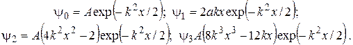 При передаче энергии через фотон его частота оказывается равной w. Приведем (без вывода) выражения для нескольких первых собственных функций гармонического осциллятора: