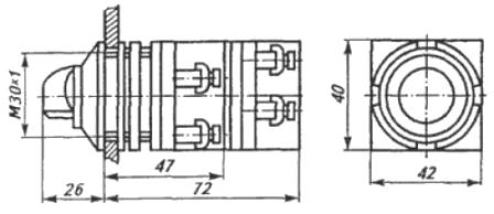 Обычно переключатели устанавливаются на пультах управления: да индивидуальных для каждого станка и центральном - управления группой станков или линией, для выполнения операций, связанных с выдачей централизованных команд или управлением элементами транспортных устройств. Поэтому переключатели управления работают в относительно хороших условиях, и к ним не предъявляются какие-либо особые требования в части их механической прочности и защиты от влияния вредной окружающей среды.