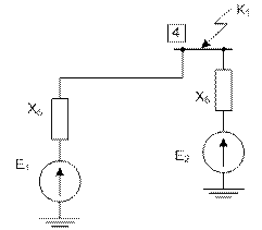 Для ручного расчета необходимо исходную схему замещения преобразовать в эквивалентную схему относительно точки КЗ, содержащую одно эквивалентное сопротивление и одну эквивалентную ЭДС[3]. При этом используются обычные приемы преобразования электрических цепей: объединение параллельных и последовательных ветвей в одну, преобразование «треугольник-звезда» и др. Такое преобразование называется «сворачиванием» схемы.