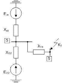Для расчета сопротивления системы можно воспользоваться рисунком 4.5, с учетом сопротивления трансформатора собственных нужд (рисунок 5.1).