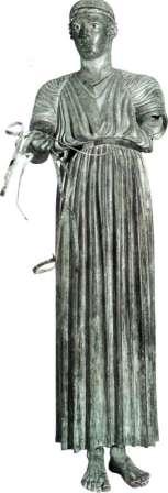 53 Высота 180 см Дельфы, Археологический музей художниками способ выявления основных объемов посредством драпировок показывает, какое значение они придавали исследованию форм. Славу греческого искусства определила именно эта сбалансированность двух начал -приверженности правилам и свободы действий в очерченных ими границах. Именно поэтому художники последующих веков постоянно обращались к греческому искусству, находя в нем и мудрое руководство, и источник вдохновения.