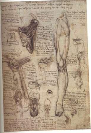 189 Деталь все эти разнообразные дисциплины и при этом внести ценный вклад в едва ли не каждую из них. Возможное объяснение этого феномена состоит в том, что Леонардо получил профессиональную подготовку не ученого, а художника, флорентийского художника. От своих предшественников он воспринял понимание художественной деятельности как деятельности исследовательской и считал своим долгом добиться еще большей точности и широты в познании видимого мира. Его не интересовало книжное схоластическое знание. По-видимому он, как и Шекспир, «знал латынь чуть-чуть, а греческий еще меньше». В то время как университетские мужи полагались на авторитет античных писателей, Леонардо-живописец не доверял прописным истинам, не убедившись в их достоверности собственными глазами. Столкнувшись с проблемой, он не искал готового ответа у признанных авторов, а старался разрешить ее опытным путем. Любое явление природы дразнило его любопытство, пробуждало исследовательскую страсть. Строение человеческого тела он изучал с помощью скальпеля, проанатомировав более тридцати трупов (илл. 190). Одним из первых он увлекся тайнами развития эмбриона в материнском чреве. Он изучал законы движения волн в водяных потоках. Он годами наблюдал полет насекомых и птиц и, анализируя его механику, пришел к идее летательного аппарата, в полной уверенности, что она непременно осуществится в будущем. Формы скал и облаков, влияние атмосферы на цвет отдаленных объектов, развитие растений и закономерности музыкальных созвучий -все волновало его ум, влекло к экспериментальному исследованию -основополагающему началу художественного творчества. Современники считали Леонардо человеком странным, причастным к чародейству. Князья и военачальники хотели использовать его дар кудесника в военной инженерии, строительстве оборонительных укреплений, в изобретении оружейных машин. В периоды мира ему приходилось забавлять их механическими игрушками, хитроумными находками в оформлении представлений и карнавальных шествий. Он был ценим и как большой художник, и как блестящий музыкант, но лишь очень немногие догадывались о силе его мышления и обширности познаний. Ведь Леонардо никогда не обнародовал своих записок и мало кто знал об их существовании. Будучи левшой, он писал справа налево, и прочесть его заметки можно только в зеркальном отражении. Не исключено, что он хранил их в тайне из опасения быть обвиненным в ереси. Так, содержащимся в них утверждением «Солнце не движется» он предугадал открытие Коперника, которое доставило столько неприятностей Галилею. Но возможно и другое - Леонардо занимался экспериментальными исследованиями только ради удовлетворения своего ненасытного любопытства. Решив проблему для себя, он терял