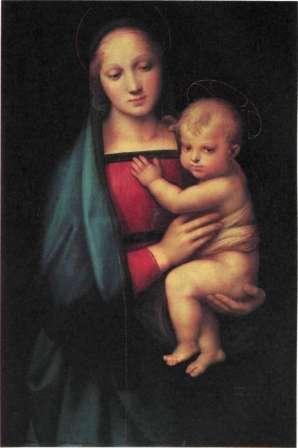 202 Явление Девы Марии Святому Бернарду семидесятитрехлетним стариком, он дал отповедь своему соотечественнику, адресовавшему письмо «скульптору Микеланджело»: «Скажи ему, -писал он, - чтобы он впредь не надписывал на своих посланиях "Микеланджело, скульптору", поскольку здесь меня знают только как Микеланджело Буонарроти... Я никогда не был ни живописцем, ни скульптором, как те, кто содержит для этого мастерскую... Хотя я и служил трем папам, это было вынужденно». В 1504 году, в разгар соревнования Микеланджело и Леонардо, во Флоренцию прибыл молодой художник, родом из городка Урбино, что в провинции Умбрия. Рафаэль Санти, известный теперь миру как просто Рафаэль (1483 - 1520), подавал большие надежды еще будучи учеником Перуджино (1446 - 1523), ведущей фигуры умбрийской школы. Перуджино принадлежал к тому же разряду успешно работающих мастеров, что и Гирландайо, Верроккьо - наставники великих флорентийцев. Чтобы справиться с наплывом заказов, он нуждался в большом количестве учеников. Его алтарные образы с их благочестивым достоинством и трогательной нежностью заслужили всеобщее признание. Проблемы, одолевавшие ранних кватрочентистов, к его времени во многом были разрешены. В лучших работах Перуджино глубинное пространство не нарушает композиционного равновесия, а воспринятое от Леонардо сфумато смягчает контуры фигур. Один из его алтарных образов посвящен Святому Бернарду (илл. 202). Оторвавшись от книги, Святой устремил взгляд на представшую перед ним Мадонну. В почти симметричном расположении фигур не ощущается нарочитости. Их движения спокойны и естественны, а группы легко слагаются в гармоничную композицию. Правда, Перуджино достиг этой слаженности за счет отказа от верности натуре, перед которой преклонялись мастера кватроченто. Нетрудно заметить, что лица двух ангелов одинаковы, будто списаны с одной модели. Художник выработал свой тип красоты, который кочует из одной его картины в другую в бесконечных вариациях. Когда смотришь подряд большое количество его работ, их однообразие кажется утомительным. Но сам Перуджино никак не предполагал, что его алтарные образы будут выставляться в галереях в один ряд. Рассматриваемые по отдельности, они доставляют удовольствие как проблески иного мира, более чистого и гармоничного, чем наш. Лучшие создания Рафаэля преисполнены артистической свободы, и трудно представить себе, что эта непринужденность была оплачена тяжелым, упорным трудом. Для многих людей Рафаэль остается мастером ясноликих Мадонн, известных настолько, что уже трудно оценивать их со стороны художественных качеств. Ведь рафаэлевский образ Мадонны был также размножен бесчисленными подражателями, как и сотворенный Микеланджело образ Бога. Дешевые репродукции, развешанные повсюду, склоняют к сомнению в достоинствах столь общепонятного, слишком «бесспорного» искусства. На самом же деле кажущаяся простота Рафаэля - плод глубоких раздумий, точного расчета и мудрого самоконтроля (стр. 34-35, илл. 17-18). Такая вещь, как Мадонна делъ Грандука, - это подлинная классика, не напрасно принятая за образец, наряду с созданиями Фидия и Праксителя, многими поколениями художников. Она не нуждается в объяснениях и потому «бесспорна». Она превосходит все предшествующие интерпретации той же темы подлинностью простоты. Рафаэль унаследовал от