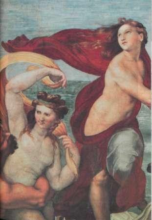 204 Фреска. 295 х 225 см Прожив несколько лет во Флоренции, Рафаэль отправился в Рим. Он прибыл туда, видимо, в 1508 году, когда Микеланджело только начал работать над фресками Сикстинской капеллы. Юлий II вскоре нашел применение его силам, поручив молодому художнику расписать стены нескольких залов в Ватикане, так называемых станц (комнат). Во фресках станц в полную силу раскрылось дарование Рафаэля -мастера рисунка и композиции. Только на месте можно оценить по достоинству эти подчиненные единому замыслу монументальные росписи, в которых формы перекликаются, а композиционные линии развиваются от одной фрески к другой. Нет смысла воспроизводить их. Фигуры, написанные Рафаэлем в натуральную величину и соотнесенные с архитектурным окружением, в мелких репродукциях утрачивают индивидуальную выразительность, поглощаются групповыми массами. В оторванных же от контекста «деталях» пропадает другое, не менее ценное качество - мелодичная непрерывность целого. С большим доверием можно отнестись к воспроизведению не столь масштабной росписи, которой Рафаэль украсил виллу богатого банкира Агостино Киджи (ныне вилла Фарнезина, илл. 204). Ее сюжет почерпнут из той же поэмы Анджело Полициано, что ранее вдохновила Боттичелли на Рождение Венеры. В стансах Полициано говорится о неуклюжем гиганте Полифеме, который славит в любовной песне красоту морской нимфы Галатеи, а она, насмехаясь над нескладной песней своего поклонника, несется по волнам в упряжке из двух дельфинов, окруженная веселой компанией морских божеств и нимф. Эту радостную картину представил в своей фреске Рафаэль, отведя под изображение Полифема другой простенок. Прослеживая взглядом сложные переплетения ликующей, бурлящей композиции, мы открываем в ней все новые красоты. Фигуры вторят друг другу, каждому движению соответствует встречное контр-движение. Нам уже знаком этот прием по картине Поллайоло (стр. 263, илл. 171). Но каким вялым и навязчивым кажется поллайоловское решение в сравнении с непринужденной естественностью Рафаэля! Начнем с купидонов, нацеливших стрелы в сердце Галатеи. Не только левая и правая фигуры симметричны друг другу, но и изгиб тела плавающего внизу путти точно соответствует позе купидона, порхающего в центре наверху. То же самое можно сказать и о группе морских божеств, кружащихся в вихревом водовороте. Боковые фигуры трубящих в раковины обращены в противоположные стороны, в таком же соответствии находятся и две пары, слившиеся в любовных объятиях. Но самое поразительное, что все эти разнонаправленные движения словно подхватываются взмывающей вверх фигурой Галатеи. Ее повозка несется слева направо, ветер относит покрывало в противоположную сторону; она повернула голову, прислушиваясь к странным звукам любовной песни, и все композиционные линии картины устремляются к ее центру - лицу Галатеи. На него указывают и стрелы купидонов, и линии натянутых поводьев. Только высокий артистизм Рафаэля мог обуздать это клокотание форм. Именно этим он заслужил восторженное преклонение многих художников. И если, по всеобщему признанию, Микеланджело достиг наивысших вершин в изображении человека, то в наследии Рафаэля ценилось прежде всего совершенство композиции - труднейшего искусства объединения свободно движущихся фигур. Эти достижения прославили Рафаэля 