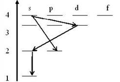 Варианты ответов: 1) 2S-1S; 2) 3d-2S; 3) 4S-2p; 4) 4S-3d